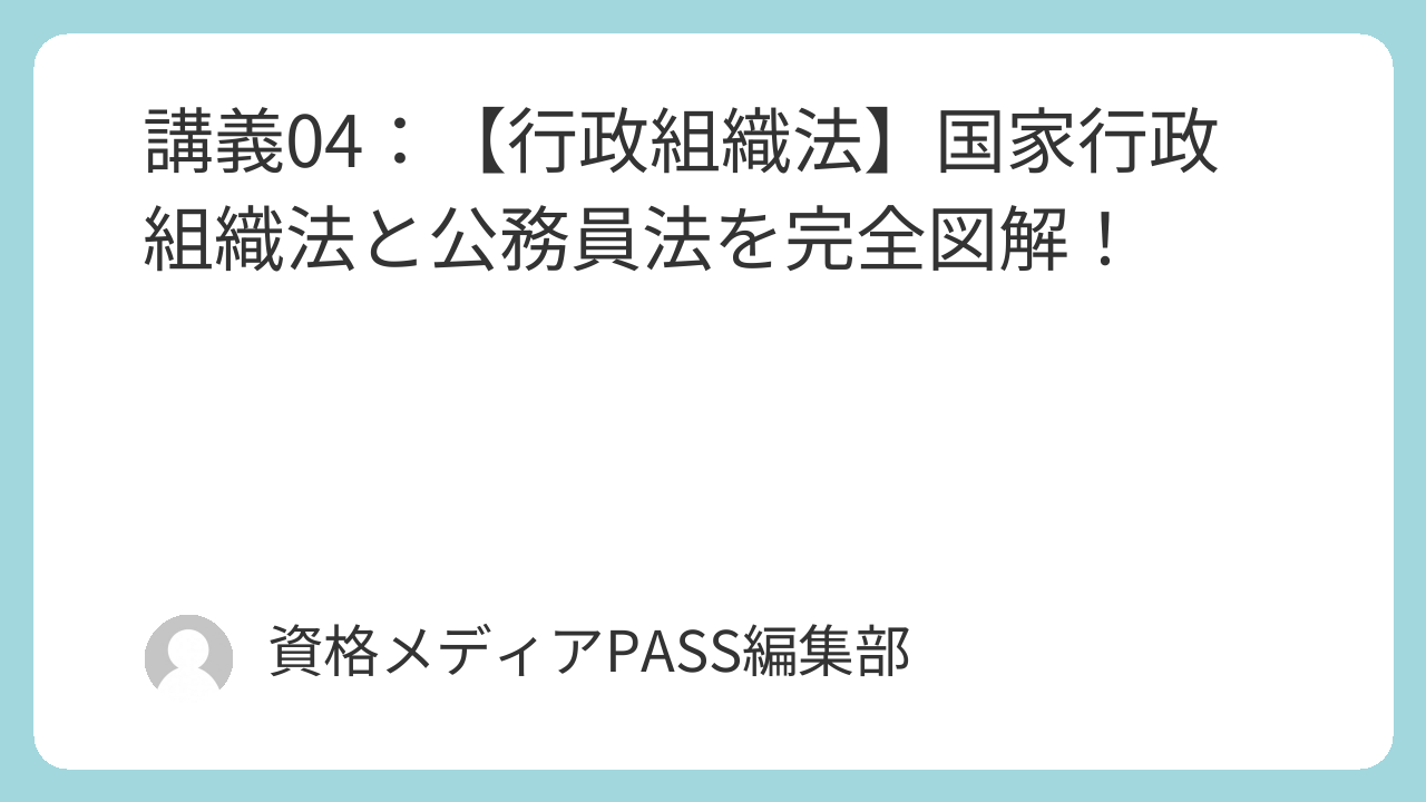 本講義では、行政書士試験で問われる「国家行政組織法」「内閣府設置法」「公務員法」の重要ポイントを、整理して解説します。ここをマスターすれば、安定した得点源になります。