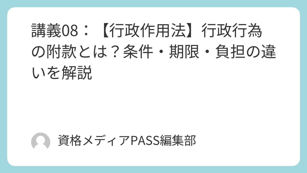 講義08:【行政作用法】行政行為の附款とは?条件・期限・負担の違いを解説