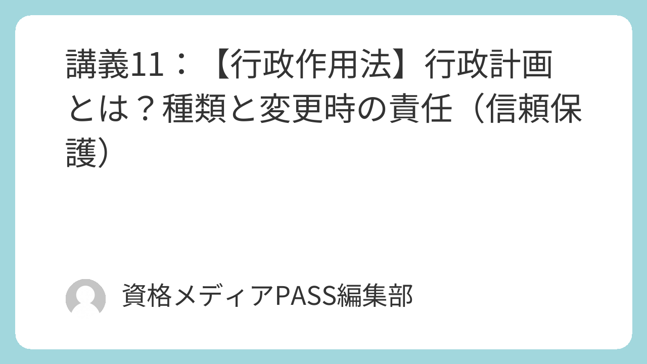 講義11:【行政作用法】行政計画とは?種類と変更時の責任(信頼保護)