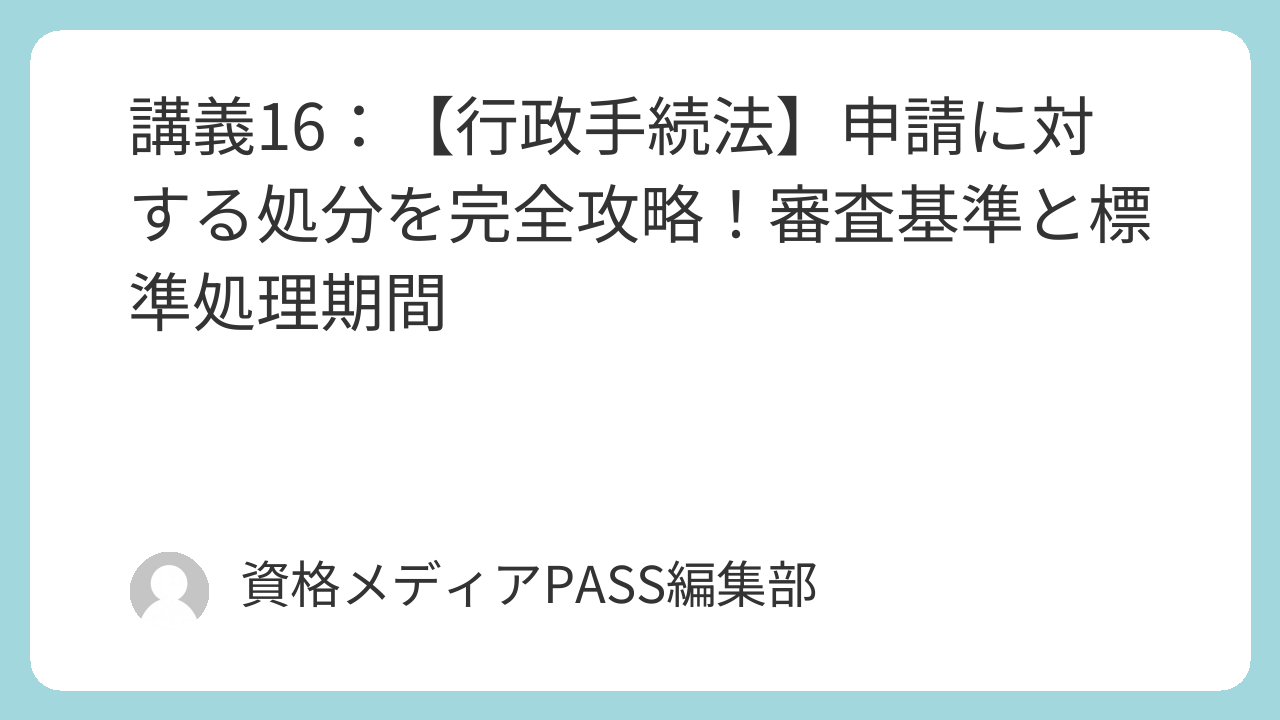 講義16:【行政手続法】申請に対する処分を完全攻略!審査基準と標準処理期間