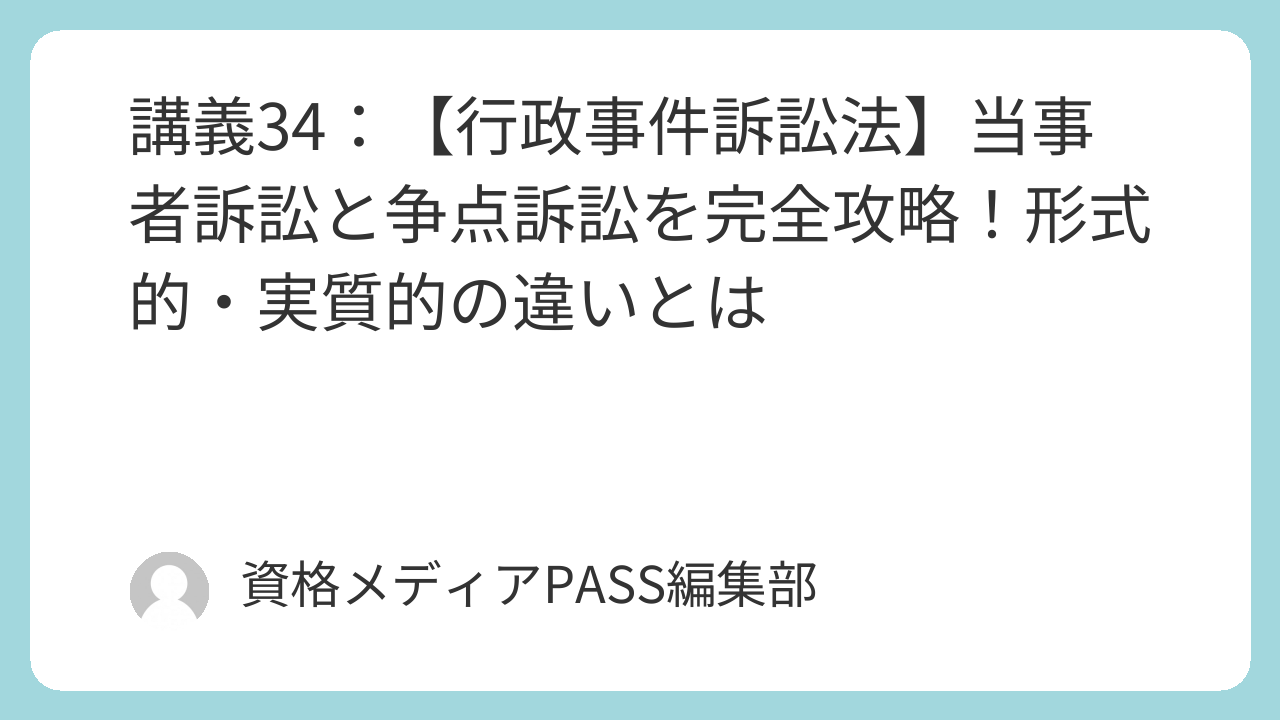 講義34:【行政事件訴訟法】当事者訴訟と争点訴訟を完全攻略!形式的・実質的の違いとは