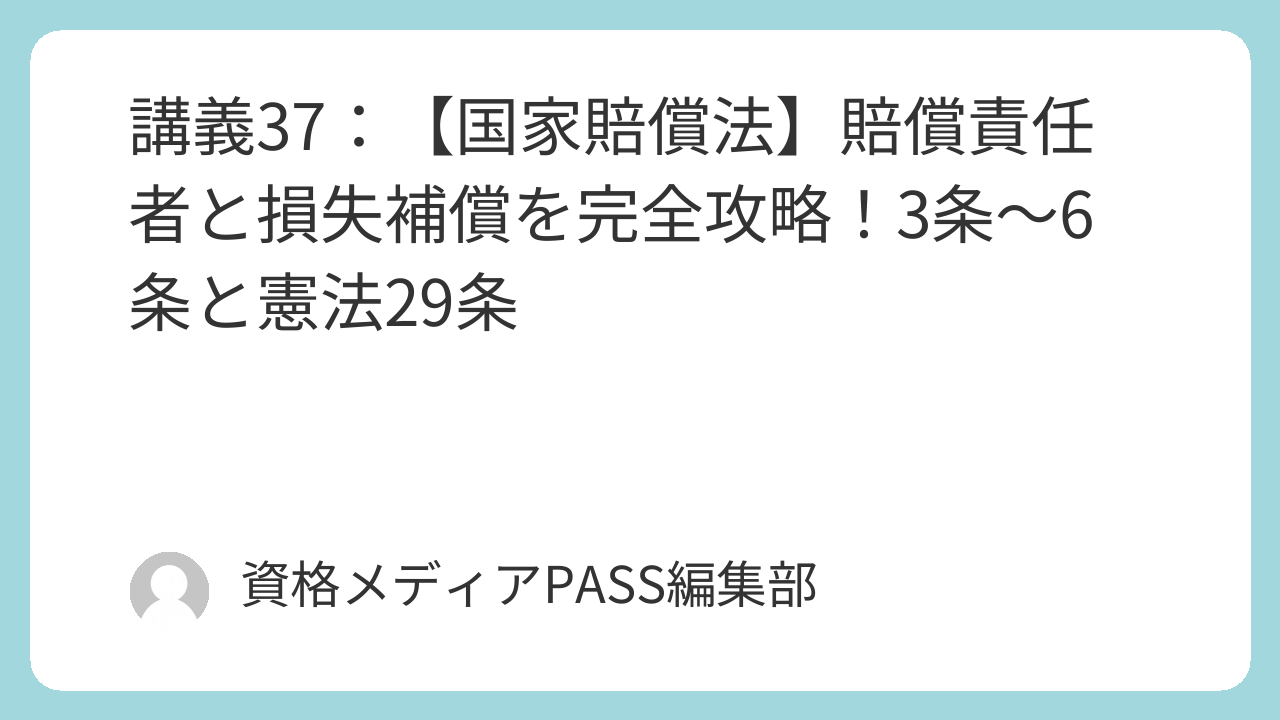 今回は、その続きとして「具体的に誰が賠償金を払うのか(賠償責任者)」や「民法との関係」といった、実務的にも試験的にも重要なルール(3条~6条)を解説します。