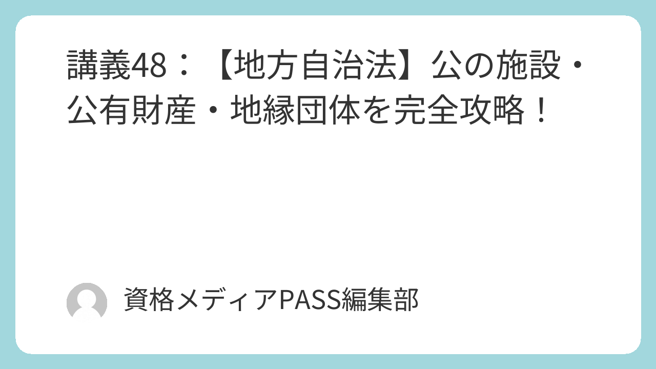 講義48:【地方自治法】公の施設・公有財産・地縁団体を完全攻略!