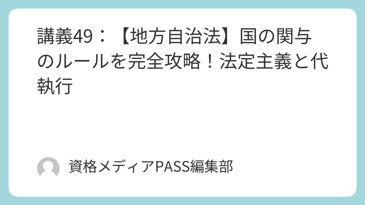 今回の講義では、地方自治法が定める「関与のルール」について、基本原則から代執行のプロセスまで徹底解説します。