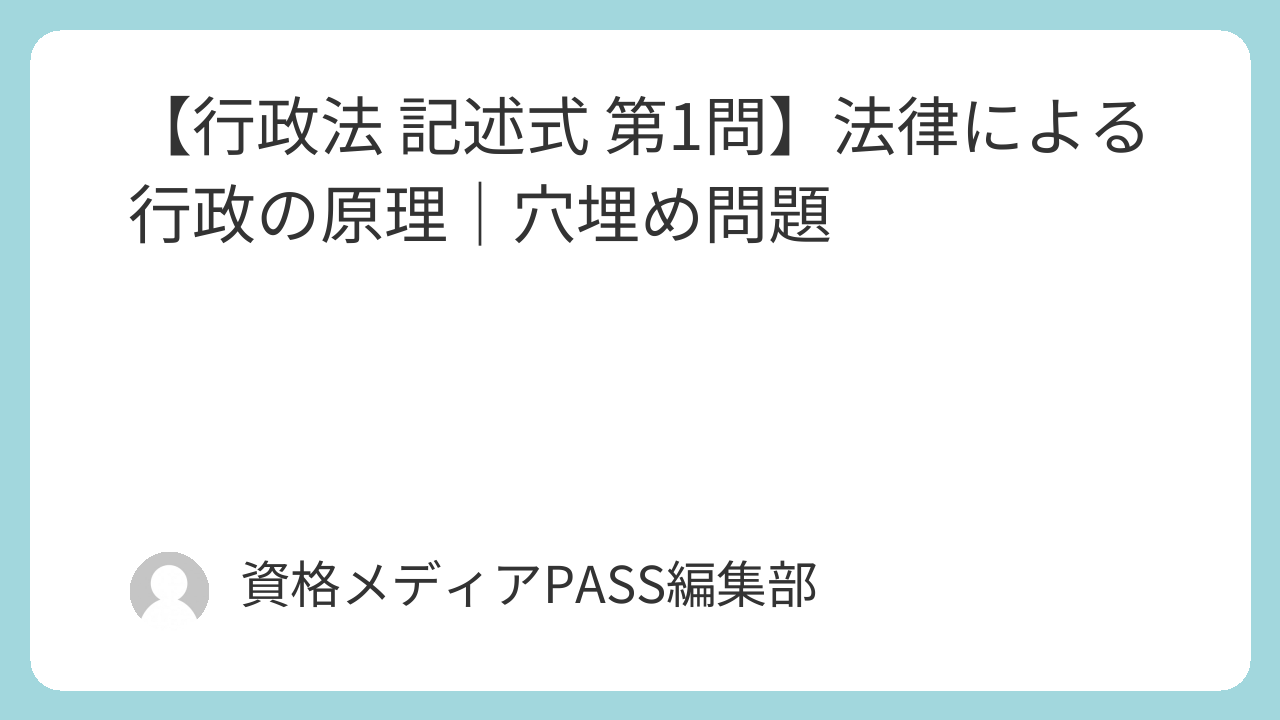 【行政法 記述式 第1問】法律による行政の原理|穴埋め問題