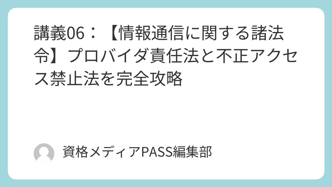 「一般知識(基礎知識)」の法令科目では、個人情報保護法や情報公開法といったメジャーな法律以外にも、情報通信技術(IT)に関連する細かい法律が出題されることがあります。