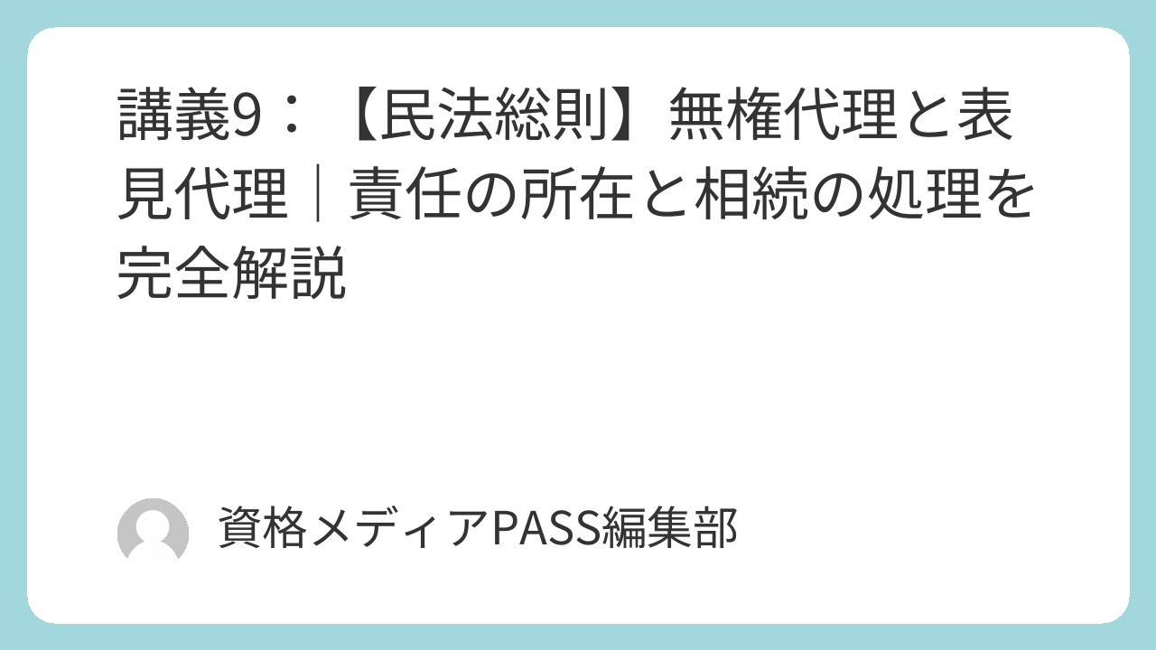 講義9:【民法総則】無権代理と表見代理|責任の所在と相続の処理を完全解説