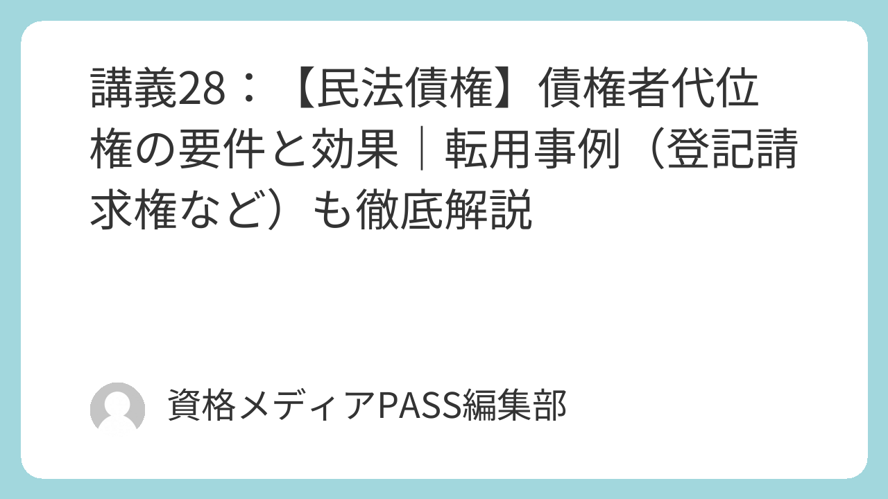 講義28:【民法債権】債権者代位権の要件と効果|転用事例(登記請求権など)も徹底解説