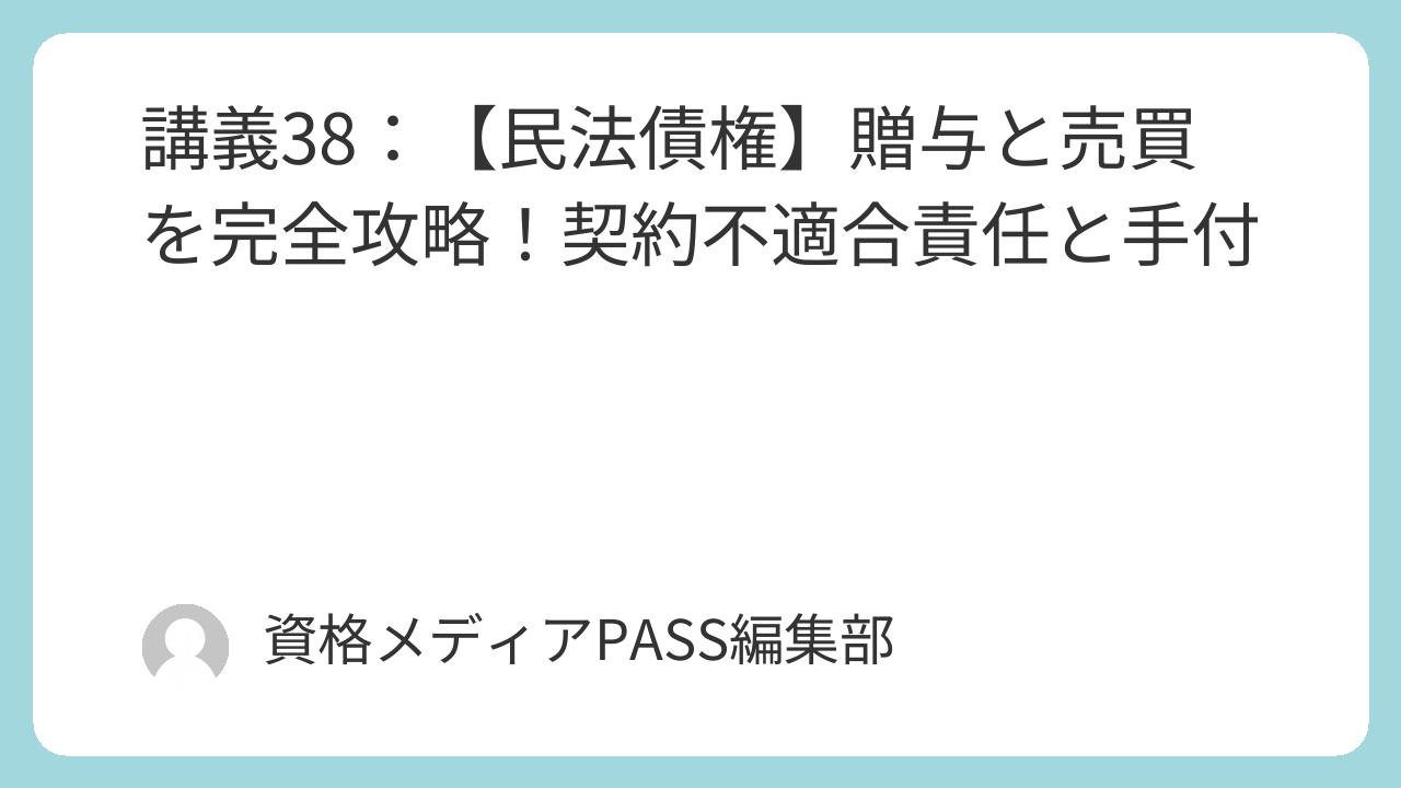 講義38:【民法債権】贈与と売買を完全攻略!契約不適合責任と手付