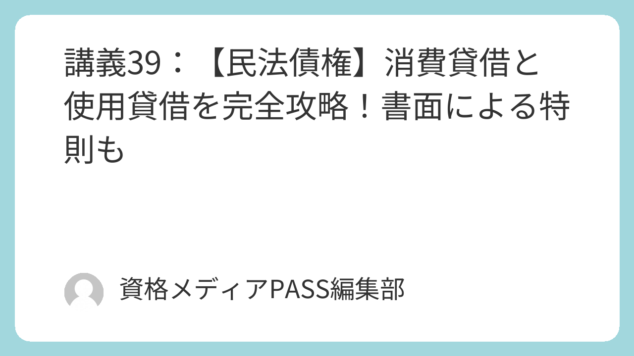 講義39:【民法債権】消費貸借と使用貸借を完全攻略!書面による特則も