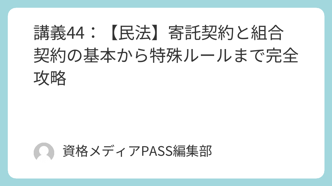 講義44:【民法債権】寄託契約と組合契約の基本から特殊ルールまで完全攻略