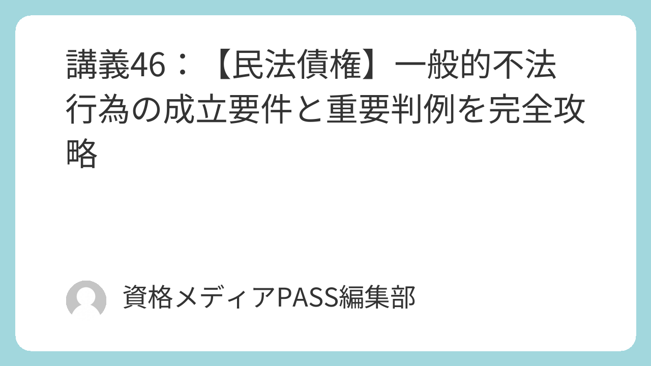 一般的不法行為の学習では、まず「5つの成立要件」を正確に暗記することが出発点です。特に「責任能力の基準(12歳前後)」や「正当防衛と緊急避難の違い」は、択一式問題でひっかけの選択肢としてよく使われます。