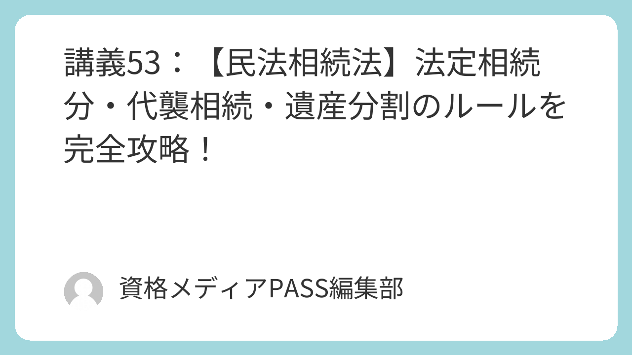 相続法は、計算問題や事例問題として出題されやすい分野です。以下のポイントを確実に押さえておきましょう。