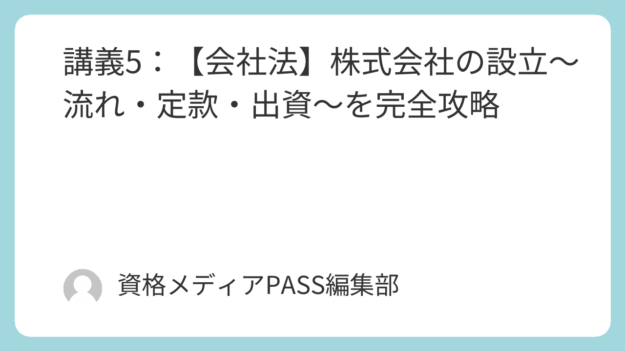 会社法は「手続きの流れ」をイメージできるかが勝負です。2026年度試験合格に向けて、設立の基礎をガッチリ固めましょう!