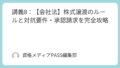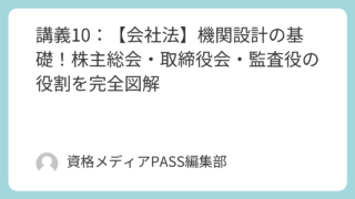 - 種類株式:9種類あるが、試験対策としては「議決権制限株式(1/2規制)」と「役員選任権付株式(公開会社NG)」の規制が最重要。