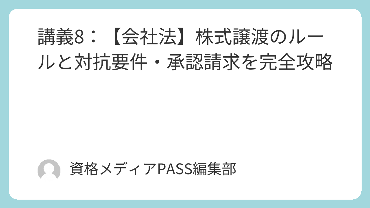 2026年度試験合格に向けて、株式譲渡のルールを完璧にマスターしましょう!