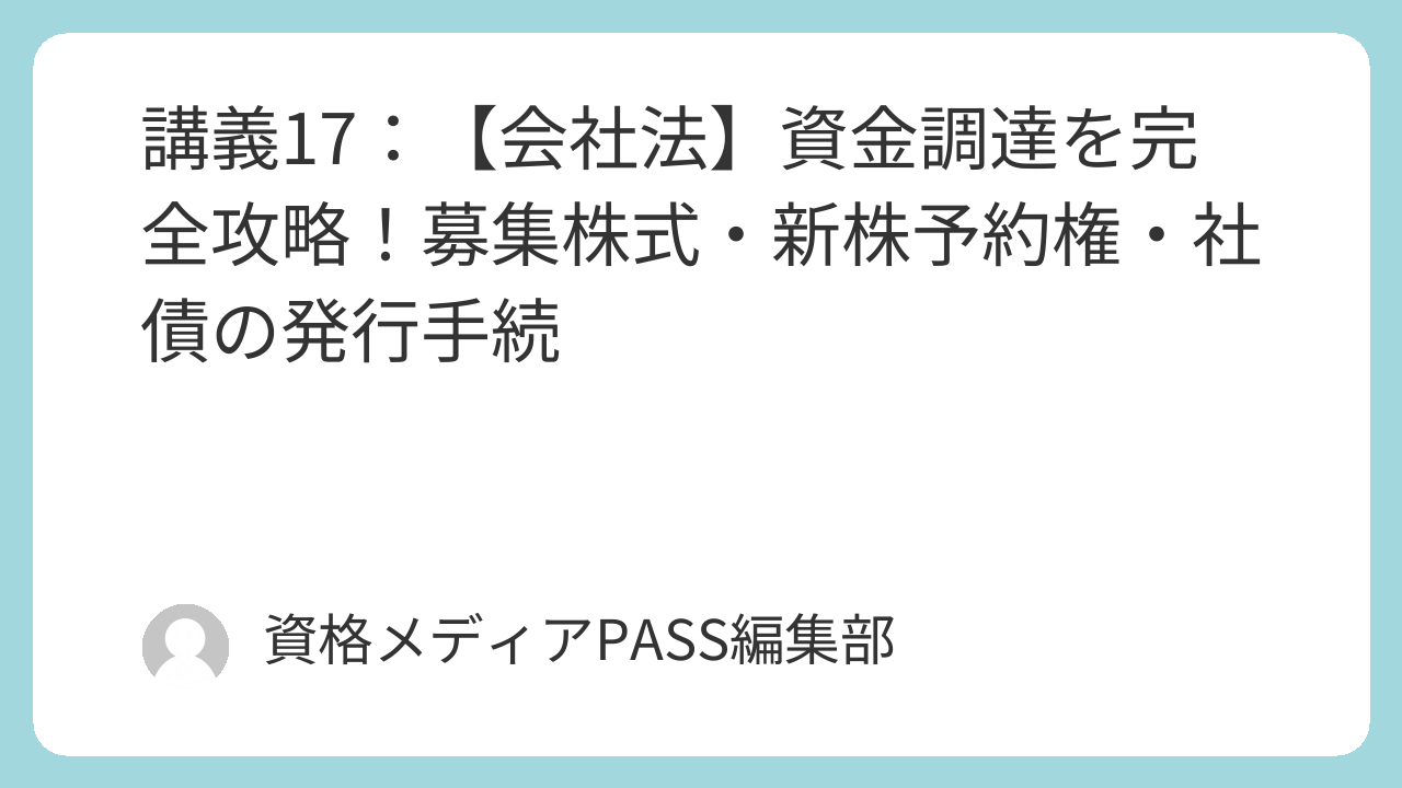 試験対策としては、特に後者の「株式発行」に関する手続きが重要です。
