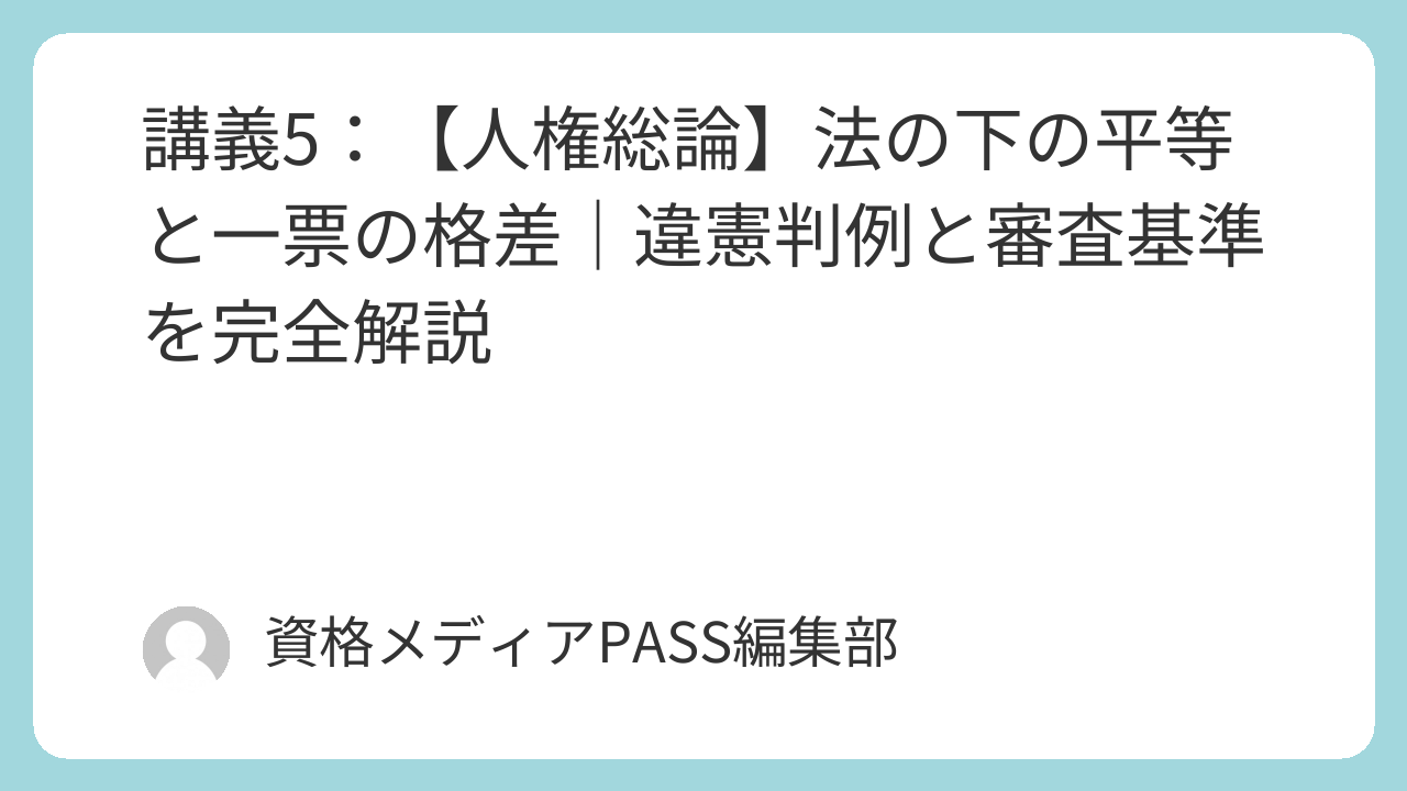 今回は、平等権に関する基礎理論から、尊属殺重罰規定や非嫡出子相続分などの違憲判決、そして受験生を悩ませる「議員定数不均衡(一票の格差)」の判例まで、試験に出るポイントを網羅的に解説します。