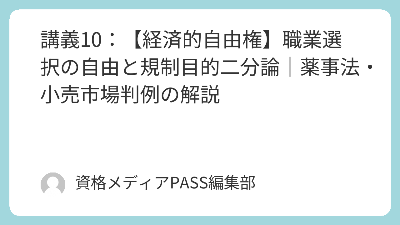 講義10:【経済的自由権】職業選択の自由と規制目的二分論|薬事法・小売市場判例の解説