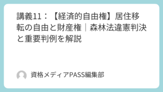 今回は、この分野の土台となる「消極目的規制」「積極目的規制」の違いを整理し、薬事法違憲判決や小売市場事件などの重要判例を比較しながら解説します。「なぜ違憲なのか」「なぜ合憲なのか」の理由付けをマスターして、得点力を高めましょう。