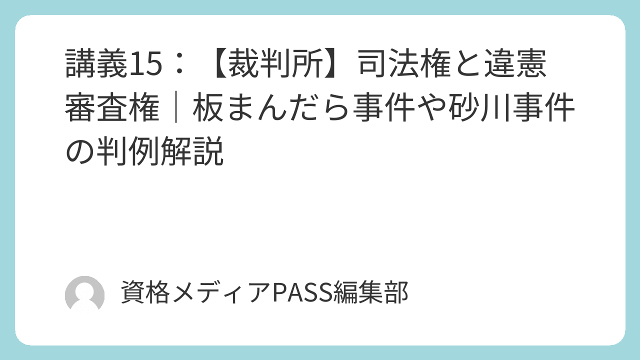 今回は、司法権の定義から、宗教や政党内部の紛争への介入可否(部分社会の法理)、そして高度な政治的行為に対する司法の抑制(統治行為論)まで、試験で問われる重要ポイントを整理して解説します。