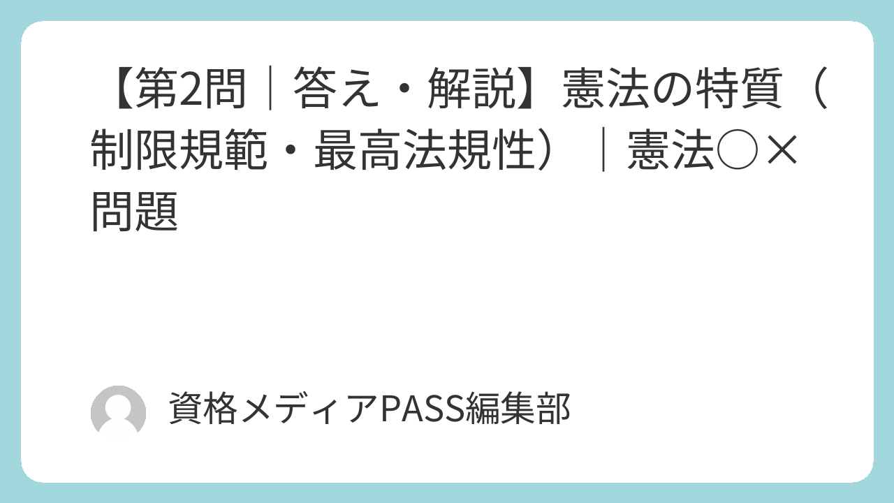 【第2問|答え・解説】憲法の特質(制限規範・最高法規性)