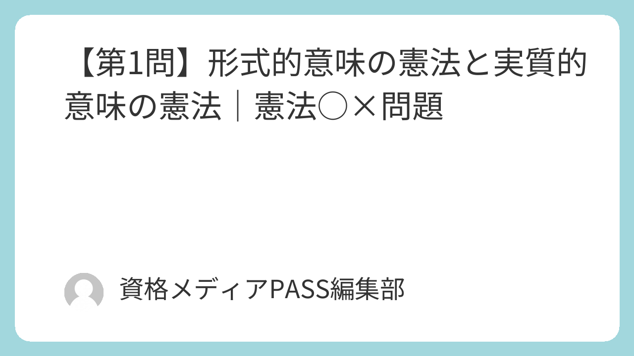【第1問】形式的意味の憲法と実質的意味の憲法|憲法○×問題 憲法 X はてブ LINE コピー 2025.12.122025.12.13 【第1問】形式的意味の憲法と実質的意味の憲法|憲法○×問題 【第1問】形式的意味の憲法と実質的意味の憲法|憲法 ○×問題 行政書士試験・本試験レベル ○×問題 「形式的意味の憲法」とは、憲法という名称を持つ成文法形式の規範のみを指し、その内容の良し悪しは問わないとされる。 ▶ 答え・解説を見る ◀ 前の問題 次の問題 ▶ ▶ 憲法 総合トップへ戻る