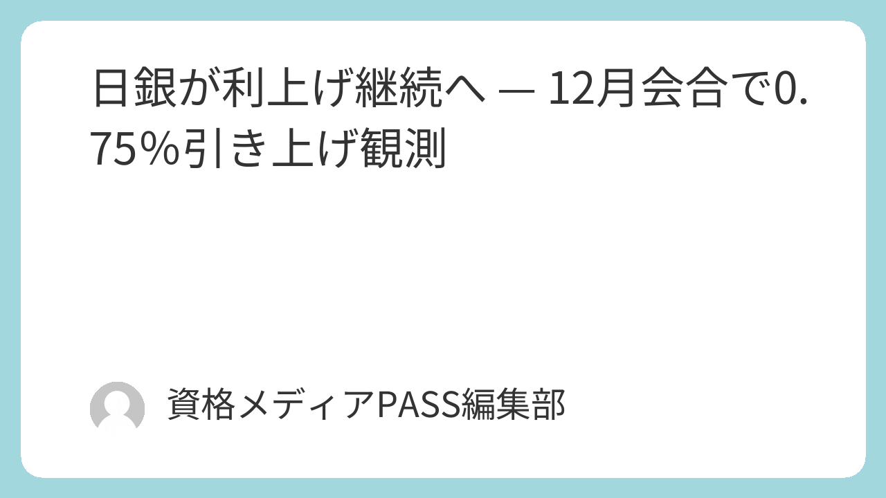 日銀が利上げ継続へ — 12月会合で0.75%引き上げ観測