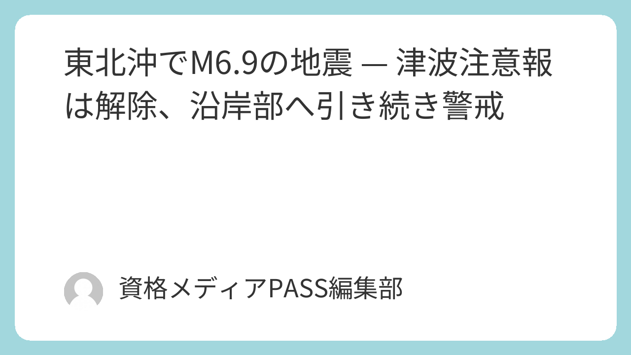 東北沖でM6.9の地震 — 津波注意報は解除、沿岸部へ引き続き警戒