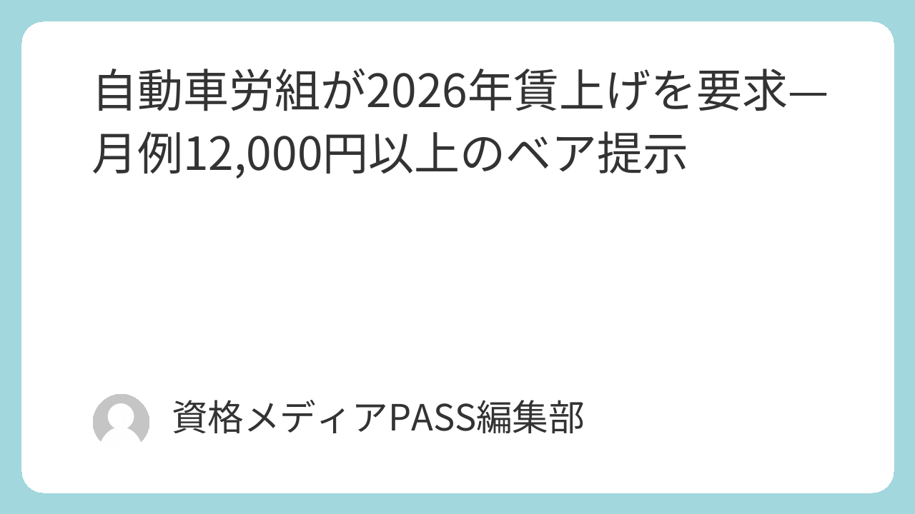 - 自動車総連が2026年のベースアップとして12,000円以上を要求