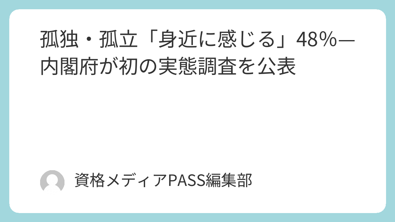 孤独・孤立は高齢化社会の主要課題であり、行政の福祉政策に直結する重要テーマです。行政書士試験でも福祉制度・社会保障が頻出で、最新動向の理解が得点に結び付きます。