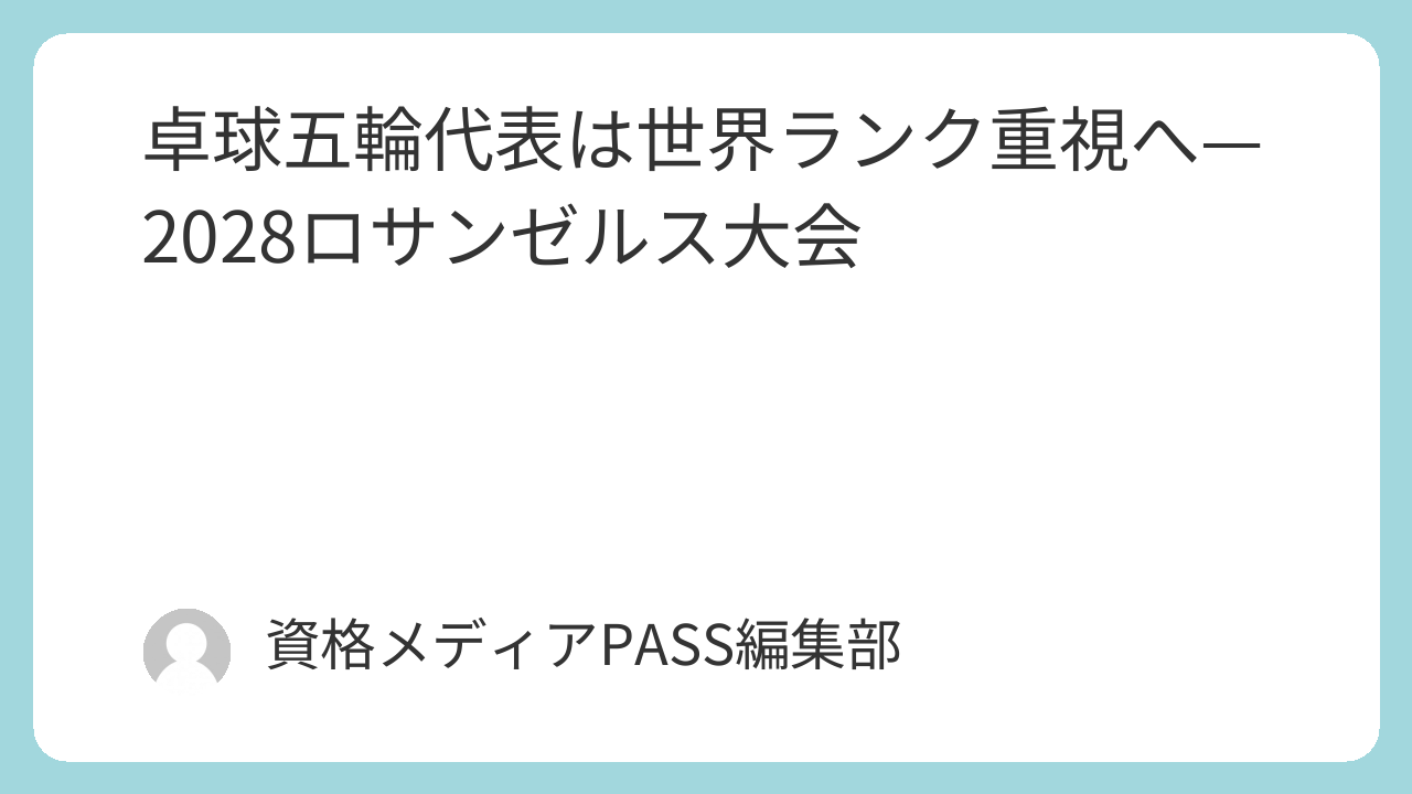 卓球五輪代表は世界ランク重視へ — 2028ロサンゼルス大会