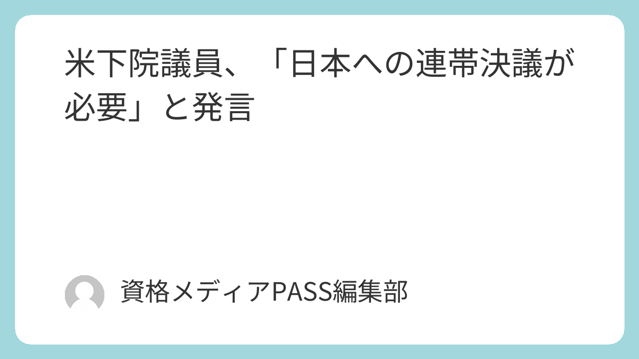 - 米国下院議員が日本への連帯決議が必要との見解を示した