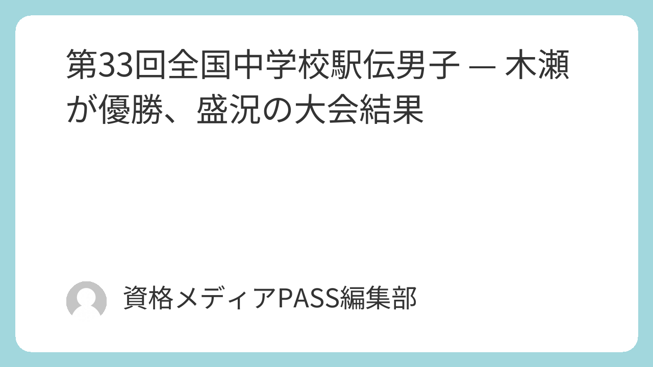 全国中学校駅伝は、都道府県予選を勝ち抜いた代表チームが襷(たすき)をつなぐリレー方式で競う陸上競技です。大会運営や地域のスポーツ振興は、教育・スポーツ政策の重要な一環であり、地域活性化や青少年育成に関わる社会制度の理解として一般知識で抑えておきたいテーマです。