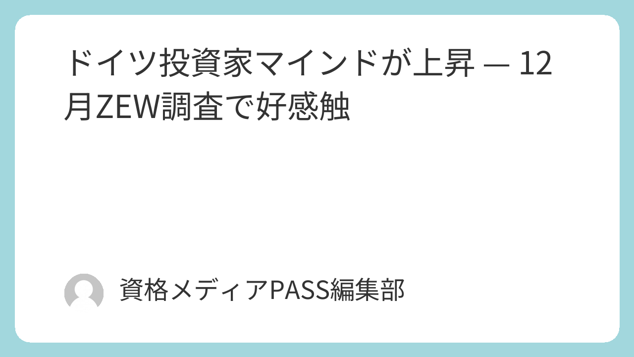 ドイツ投資家マインドが上昇 — 12月ZEW調査で好感触