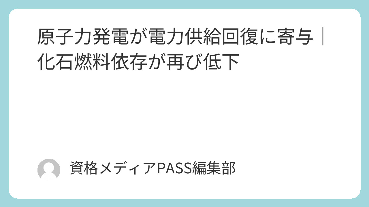 原子力発電が電力供給に回復|化石燃料依存が再び低下