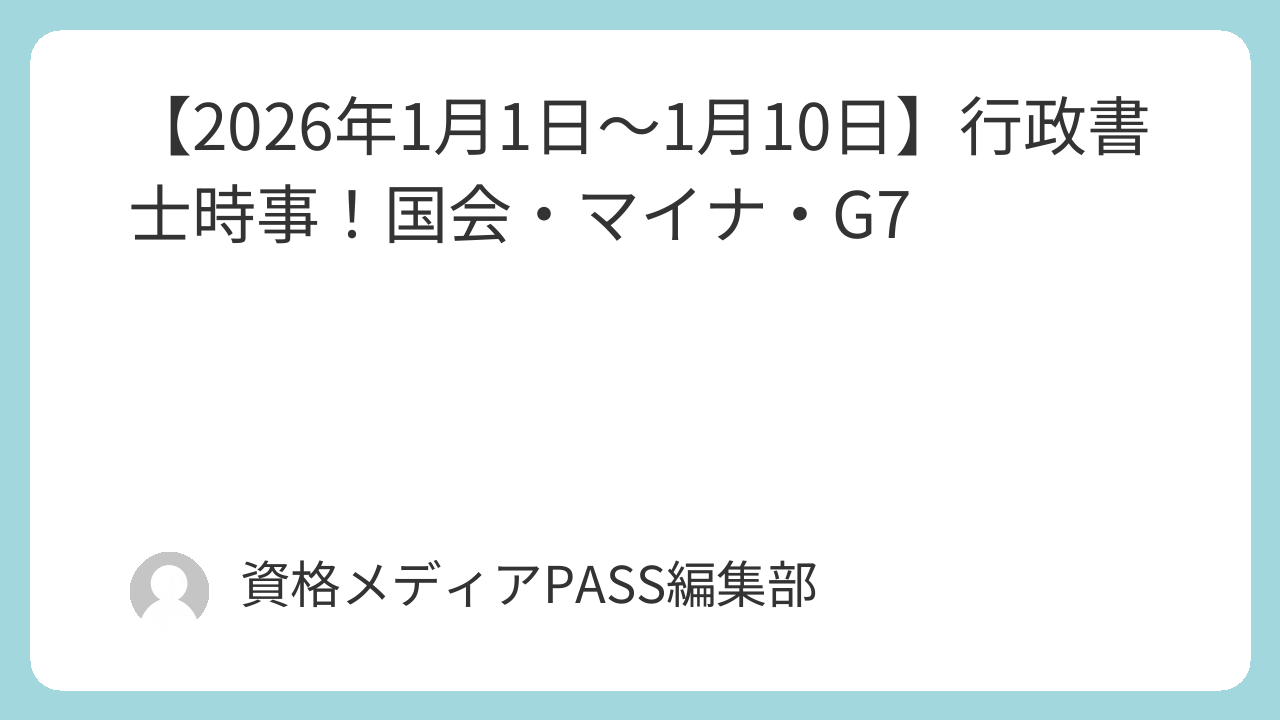 【2026年1月1日~1月10日】行政書士時事!国会・マイナ・G7