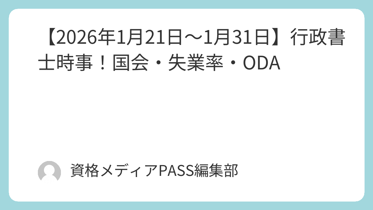 【2026年1月21日~1月31日】行政書士時事!国会・失業率・ODA